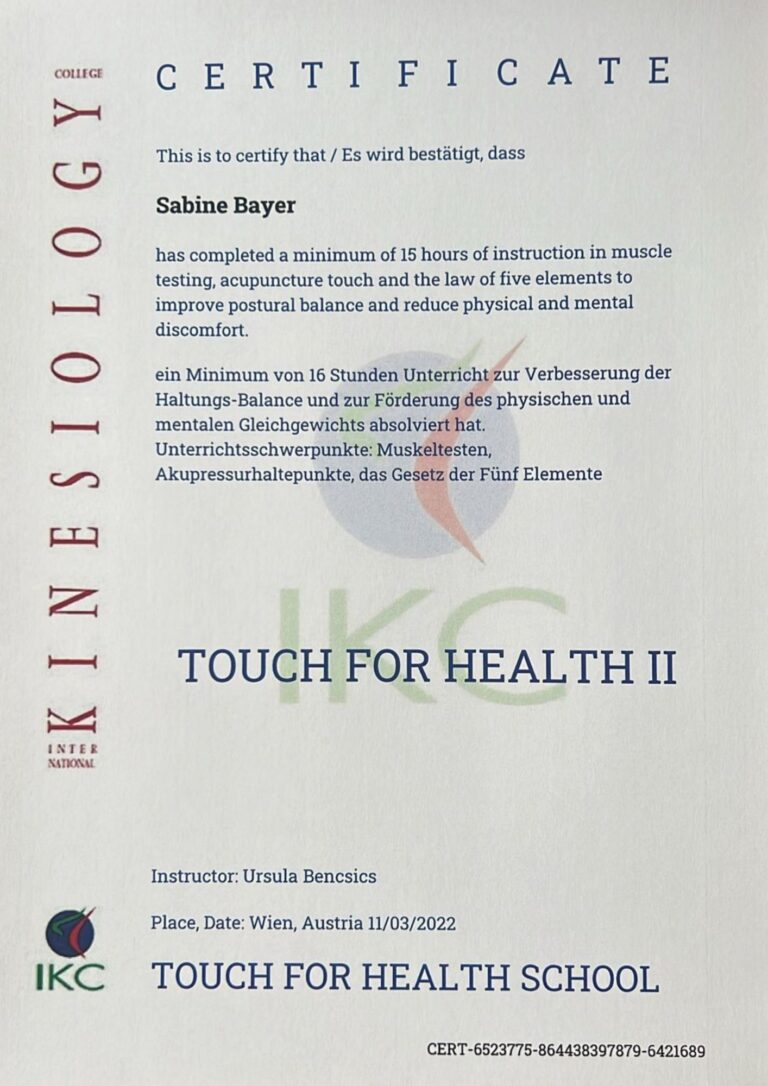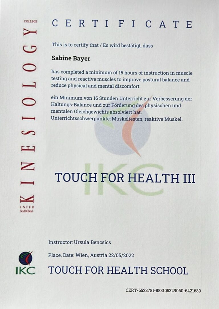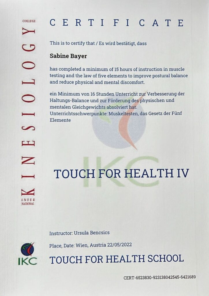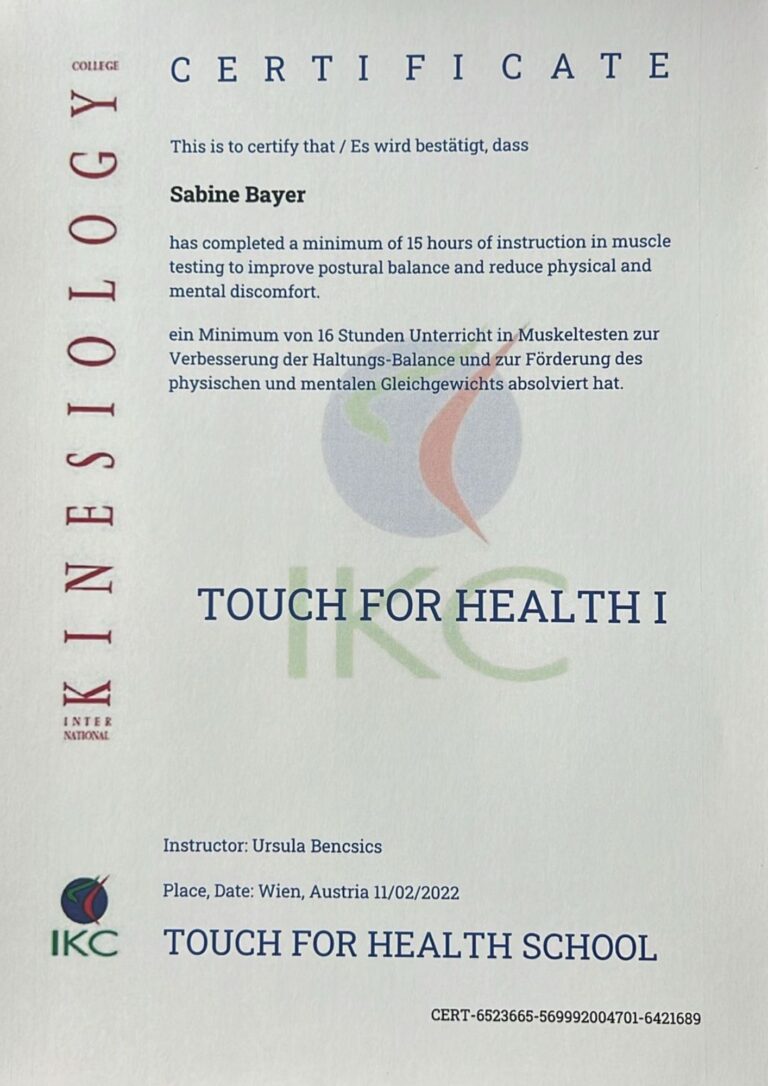 Geeignet für: „Dein Körper weiß, was er braucht.“ Kinesiologie dient bei Bedarf zusätzlich der Entscheidungsfindung und wird bei mir ausschließlich als Muskeltest in Kombination mit anderen Anwendungen eingesetzt (keine Einzelanwendung).